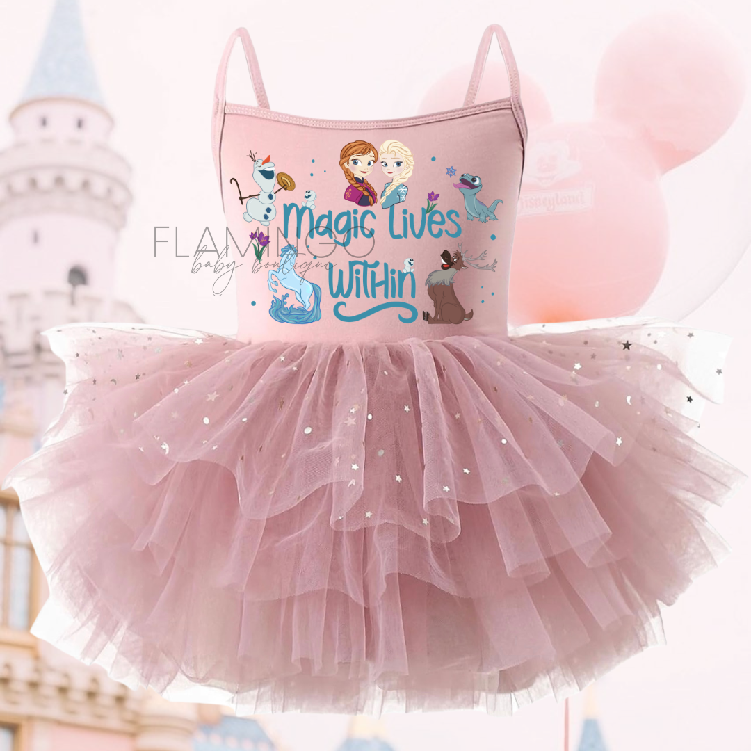 The skirt is full and flowy with layered ruffles that create the most beautiful twirl effect—because every little girl deserves a dress that moves with her magic ✨
