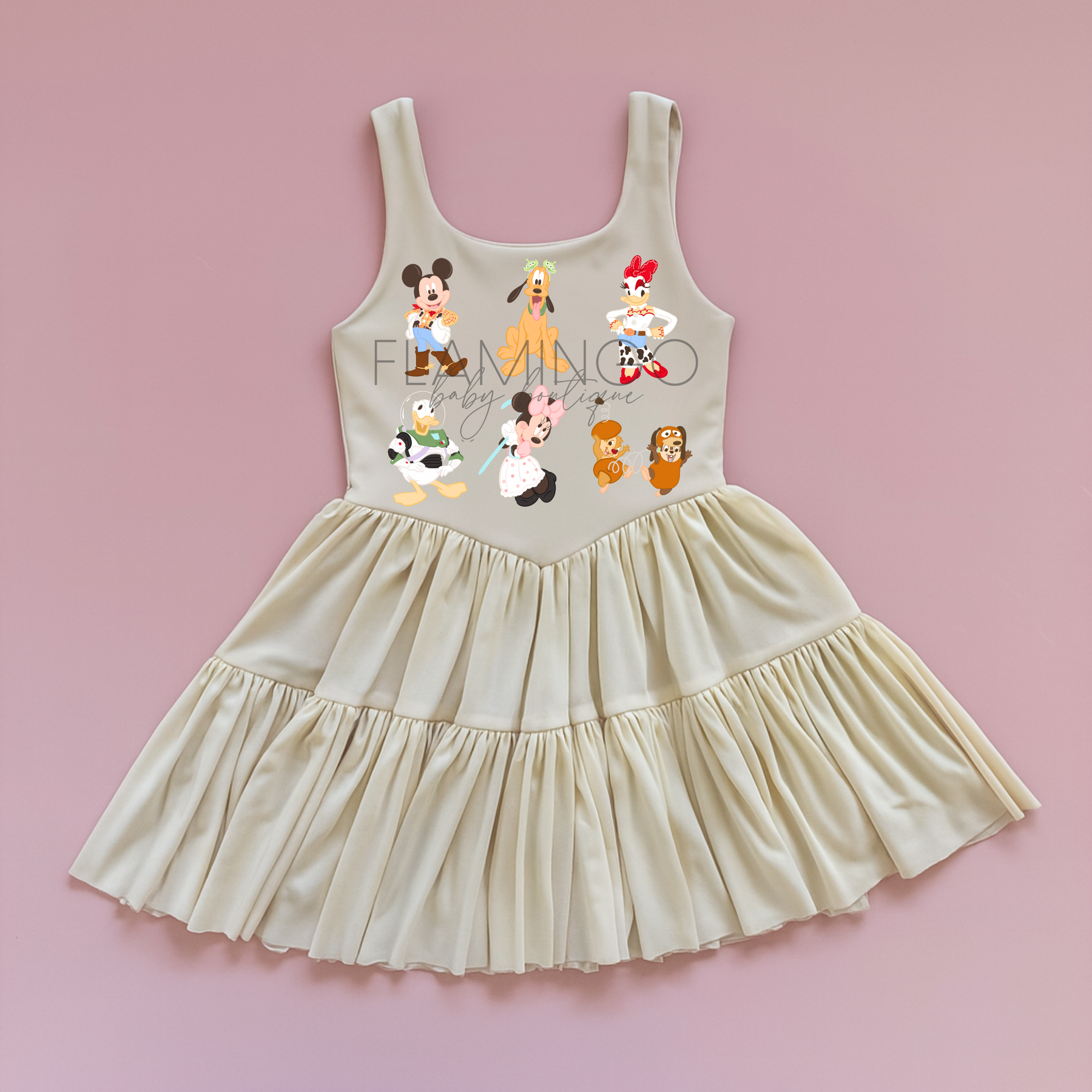 The flattering fitted bodice and flowy tiered skirt make it perfect for park days, vacations, errands, or matching moments.