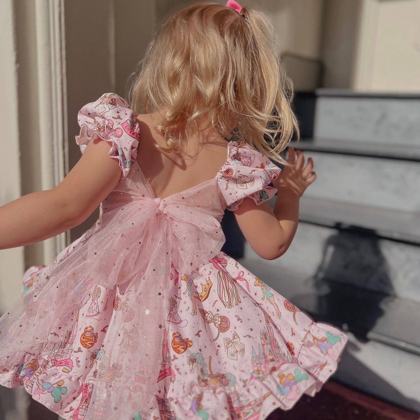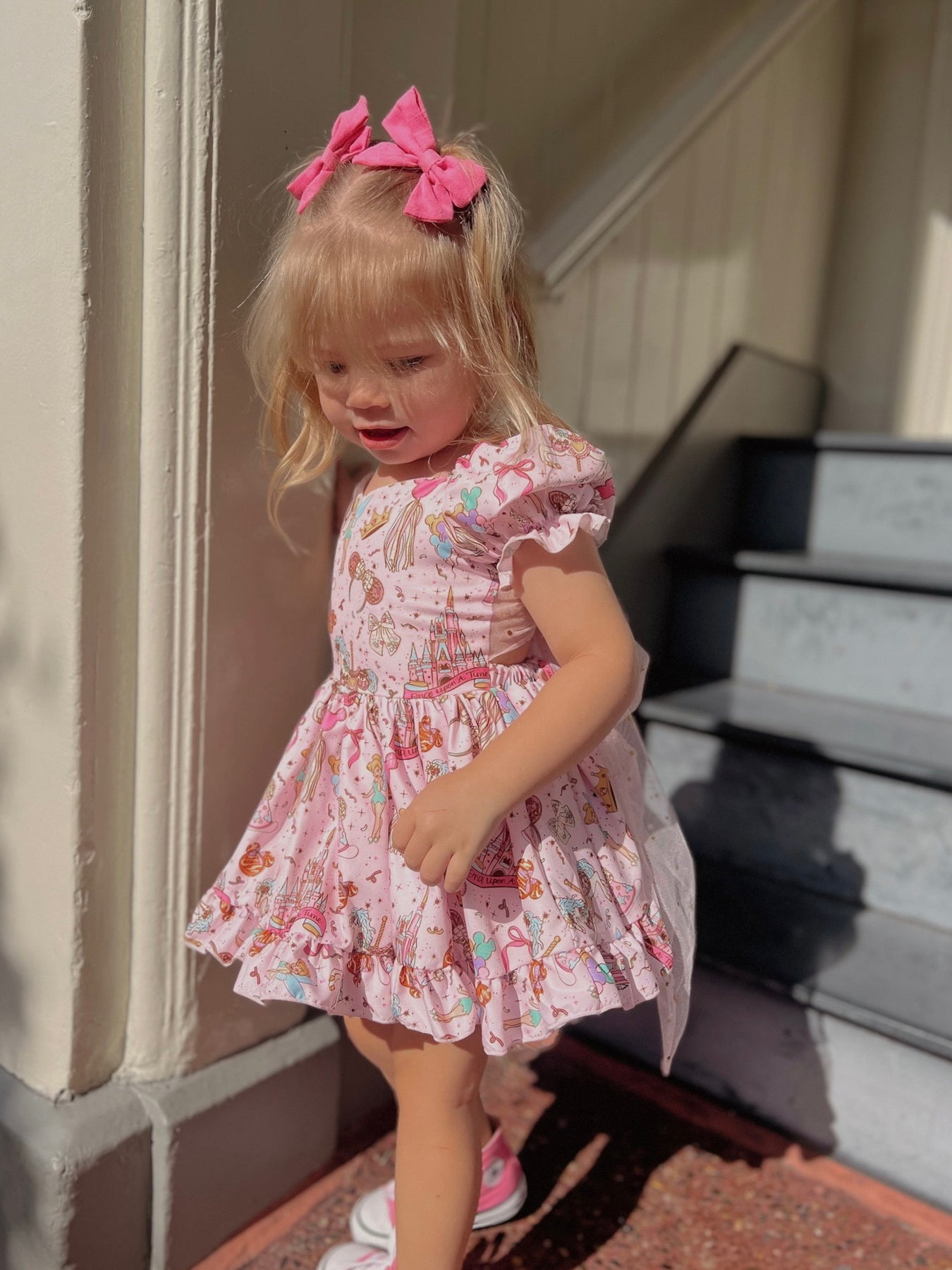 This adorable two-piece features a puffed sleeve top paired with a twirl-worthy skirt with built-in shorts, covered in a playful Valentine's print of your favorite cheerful characters, hearts, and sweet cupids. Made with comfort in mind, it's perfect for twirling, celebrating, and making memories that sparkle as bright as Valentine's magic.